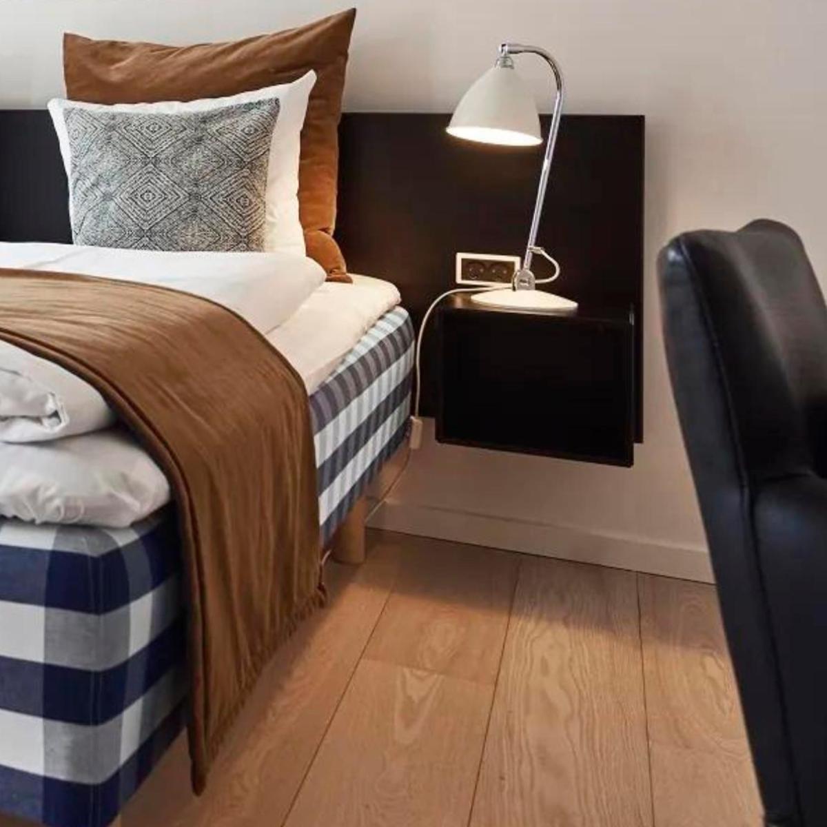 Hotel Oasia’s rooms feature classic Nordic design some with light wooden flooring and others with carpets.have luxury beds by Hästens, and some have designer chairs from Theselius and Kjaerholm.