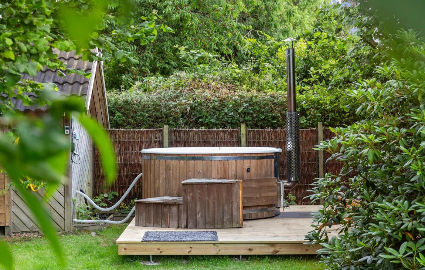 Four-Bedroom Holiday Home. Guests will have a special experience as this holiday home provides a hot tub and a fireplace. Featuring a private entrance, this air-conditioned holiday home comprises a kitchen, 4 bedrooms and 2 bathrooms with a shower and a hairdryer. Guests will find a stovetop, a refrigerator, a dishwasher and kitchenware in the fully equipped kitchen. The holiday home also provides guests with a barbecue. This holiday home features a washing machine, a tea and coffee maker, a TV and outdoor furniture. The unit offers 5 beds.