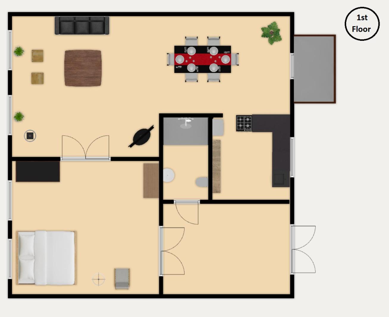 Four-Bedroom House. The holiday homes kitchen is available for cooking and storing food. Boasting a terrace with garden views, this holiday home also features heating and a flat-screen TV. The unit has 7 beds and 2 futons.