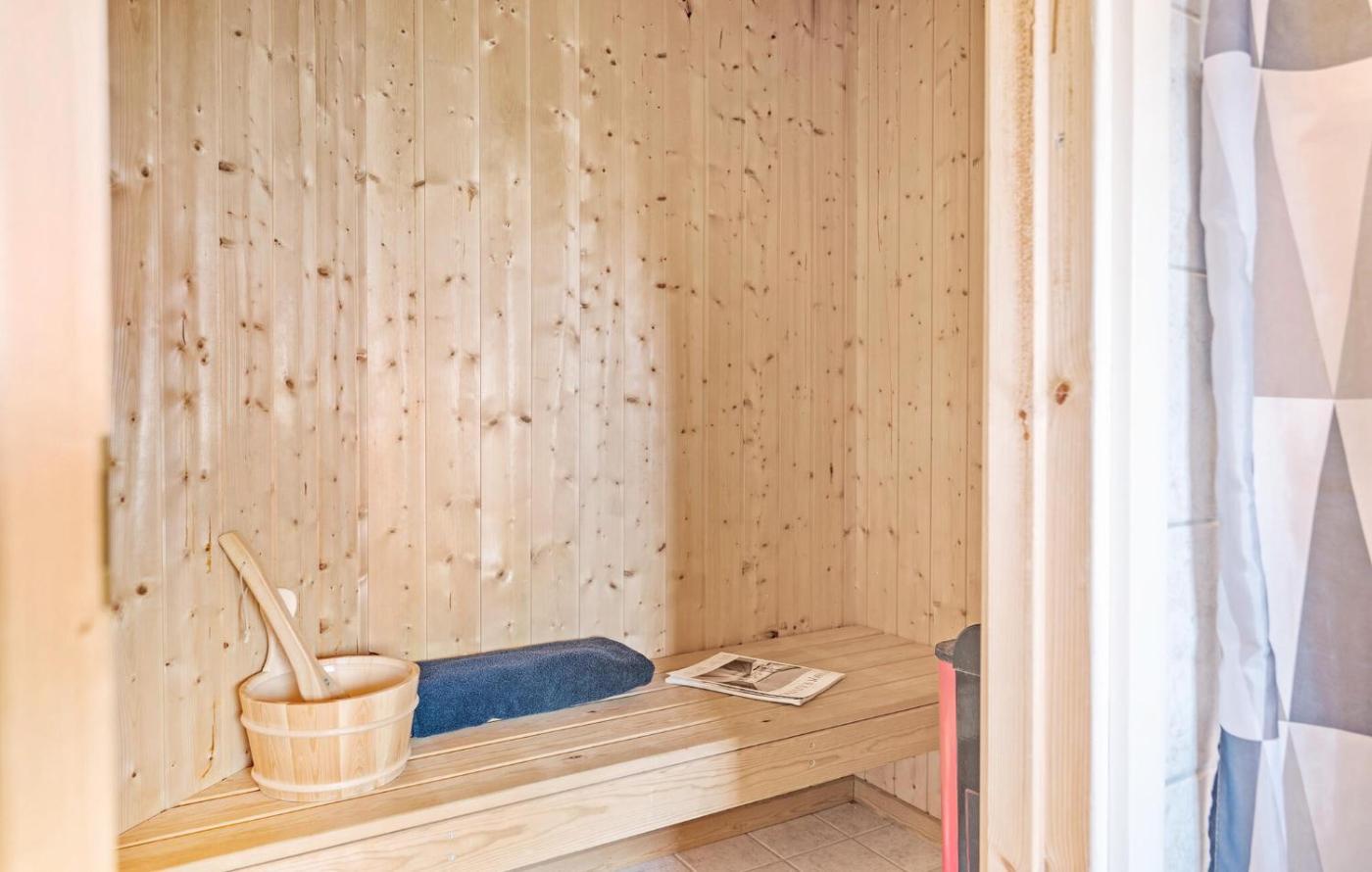 Three-Bedroom Holiday Home. Guests will have a special experience as this holiday home provides a hot tub, a sauna and a fireplace. Boasting a private entrance, this holiday home also includes 1 living room, 3 separate bedrooms and 1 bathroom with a shower. The fully equipped kitchen has a stovetop, a refrigerator, a dishwasher and kitchenware. Featuring outdoor furniture, this holiday home also offers a washing machine, a tea and coffee maker and a flat-screen TV with cable channels. The unit has 4 beds.
